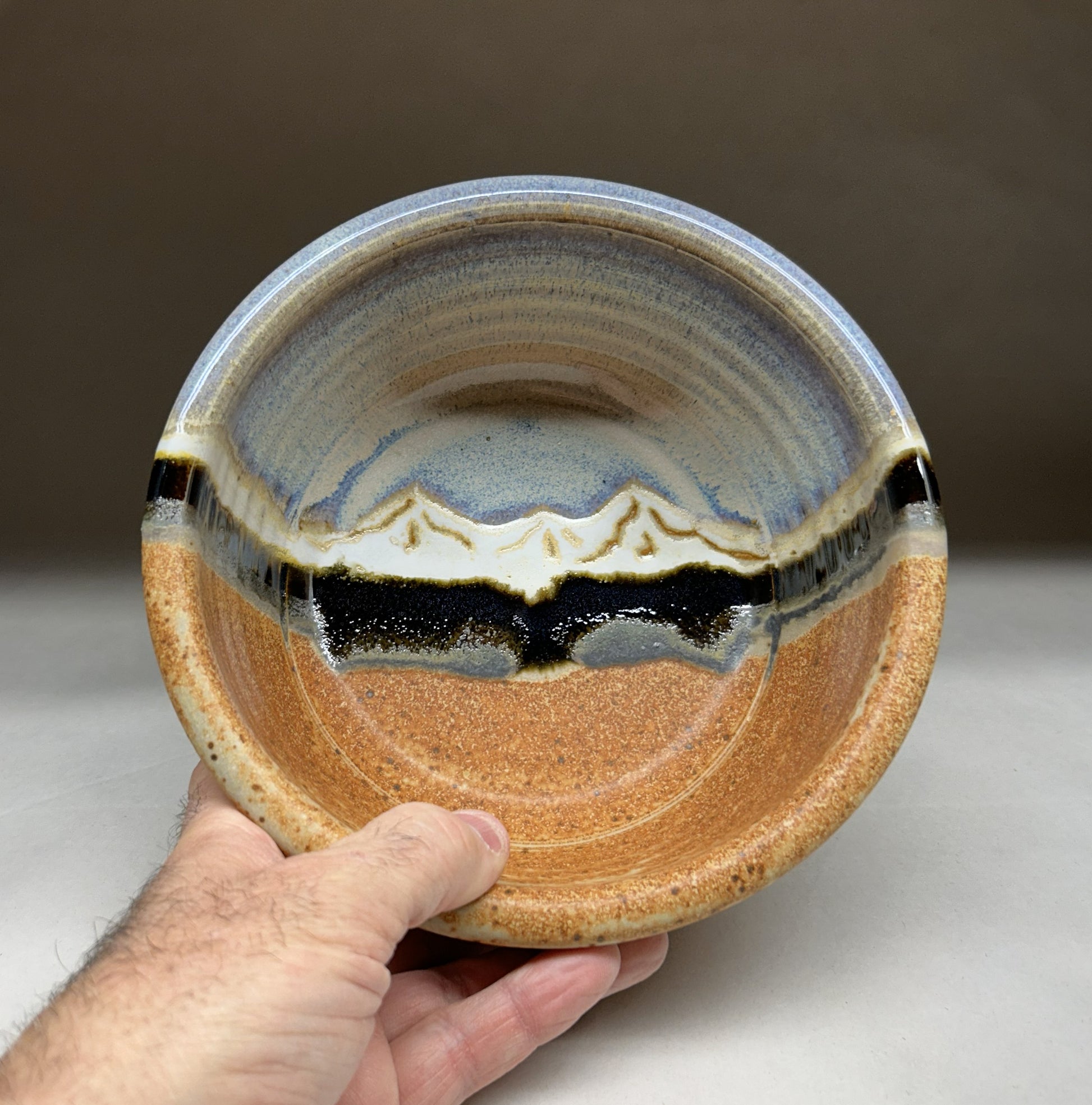 Handmade Pottery Dog Bowl with Snowy Mountain Glaze