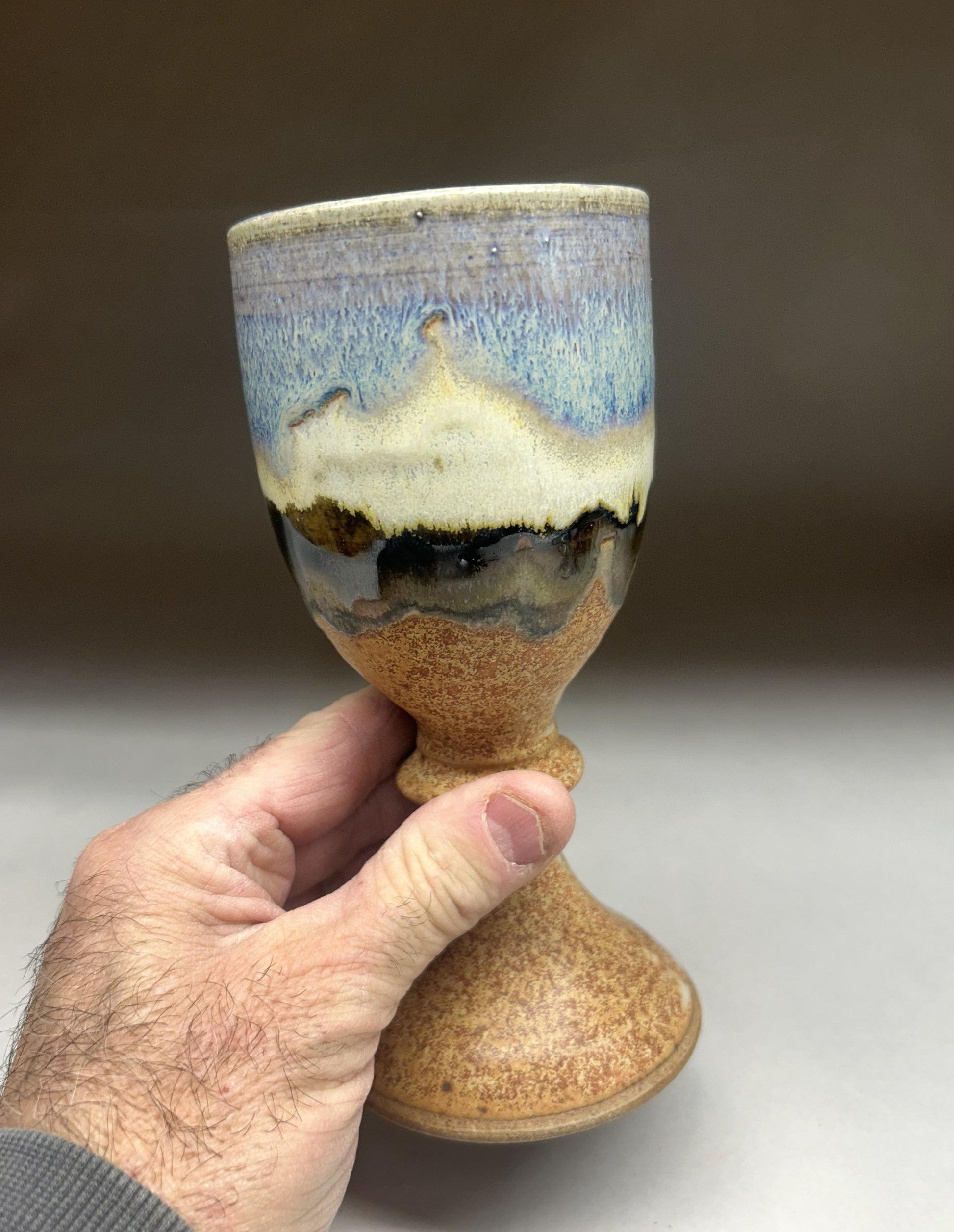 Handmade Pottery Goblet - Snowy Mountain Glaze design