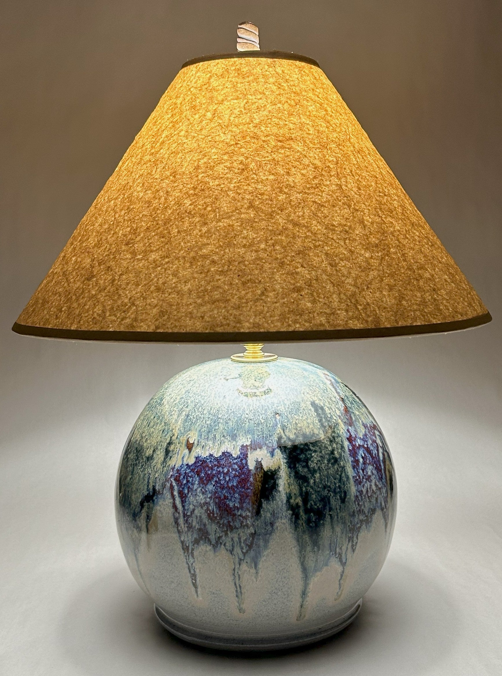 Handmade pottery lamp base with natural glaze