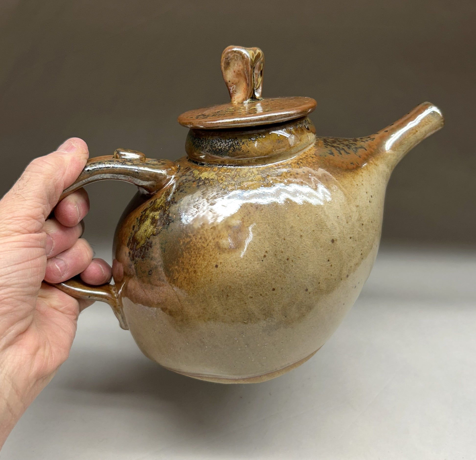 Handmade pottery teapot finished in a beautiful Shino glaze