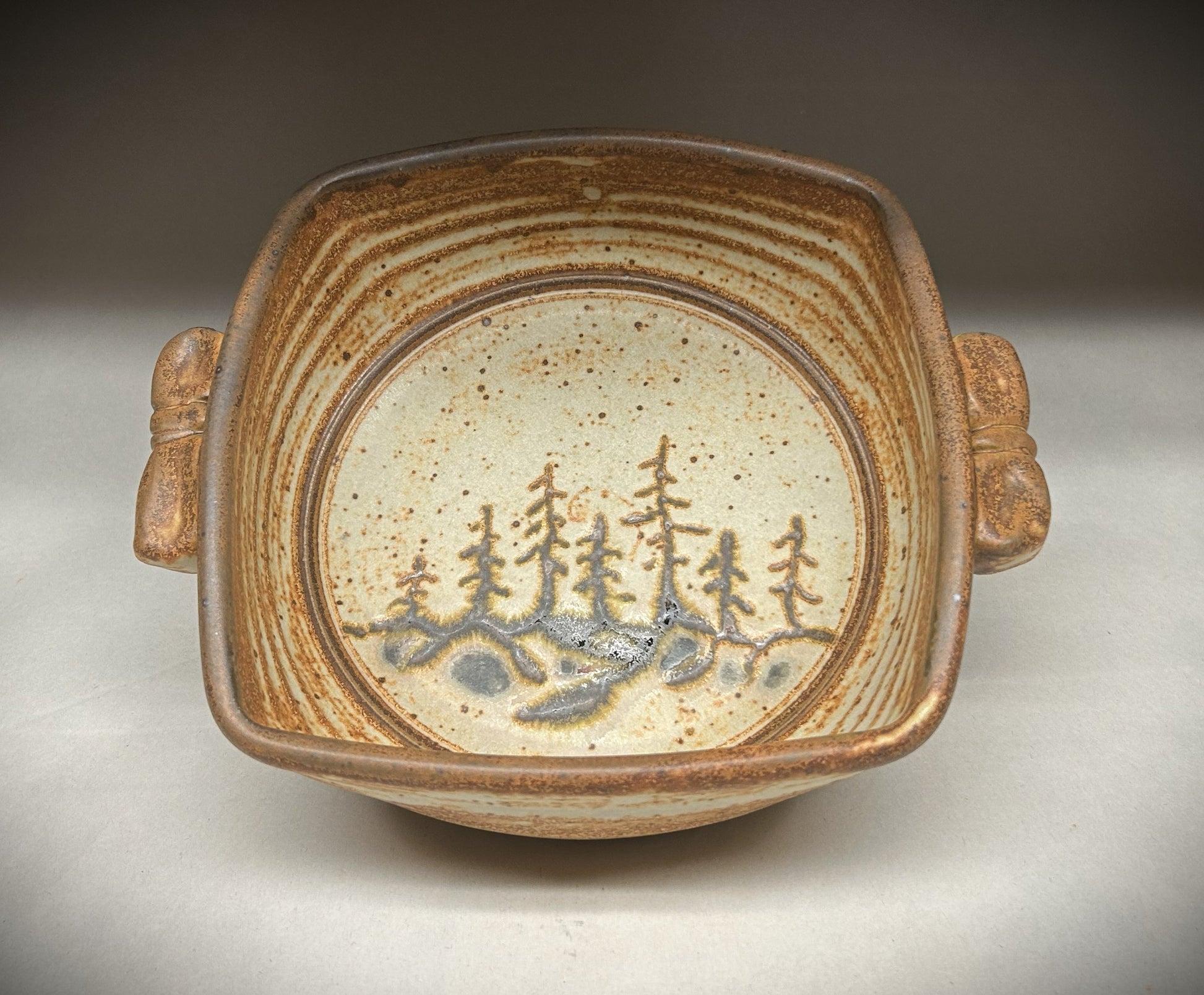 Handmade Square Pottery Baking Dish with Lodge Pole Pine Glaze